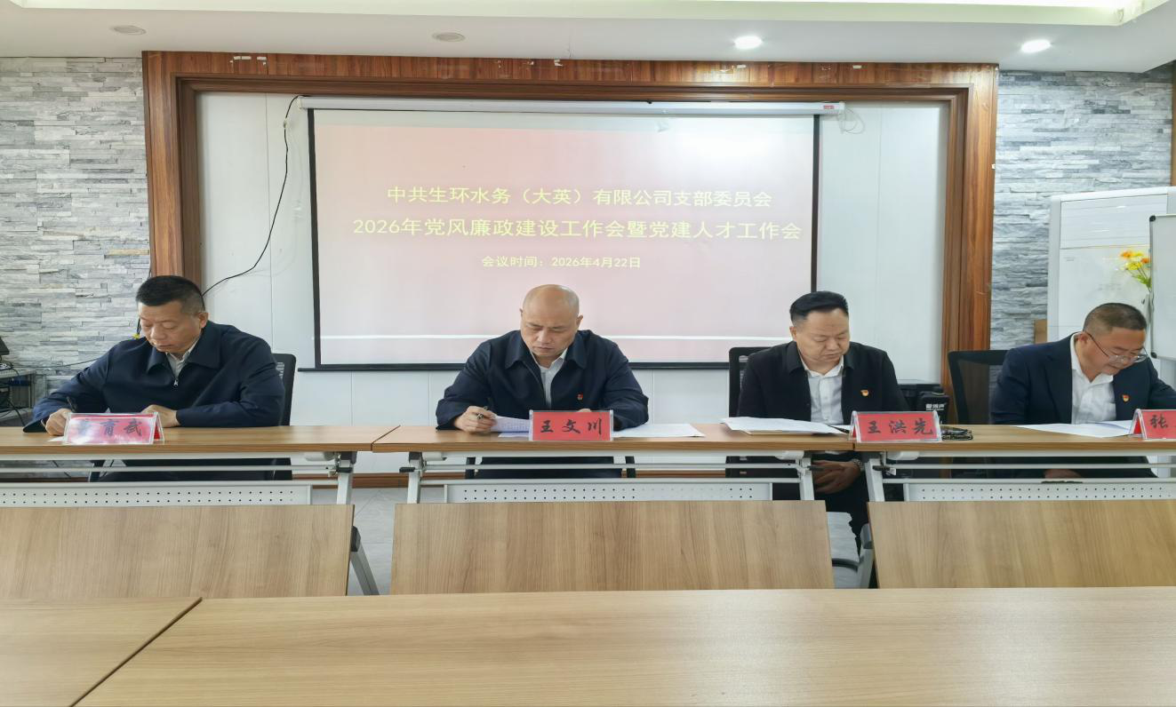 4月22日,生环水务(大英)有限公司党支部召开党风廉政建设暨党建人才工作会议,公司领导班子成员及全体党员干部参加会议。会议组织观看警示教育片《清理“围猎”污染源》,传达学习二十届中央纪委五次全会、省纪委十二届五次全会、省组织部长会议、省委人才工作领导小组会议及上级有关会议精神;党支部书记王文川全面总结2025年工作,部署2026年重点任务,并与领导班子成员、部门负责人签订党风廉政建设责任书和廉洁从业承诺书。